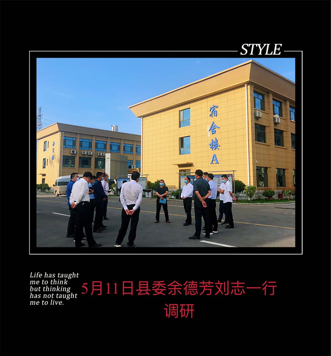 2020年5月11日下午,县委书记余德芳,县长刘志一行在我司黄总的陪同下,考察我司在疫情期的防控及复产复工情况。