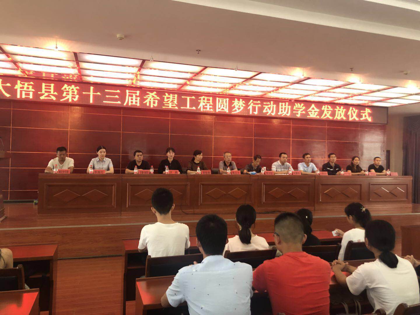 8月31日,大悟县第十三届希望工程圆梦行动助学金发放仪式在县团委举行,公司常务总黄万平代表公司参加捐助仪式,并作为企业代表发言!