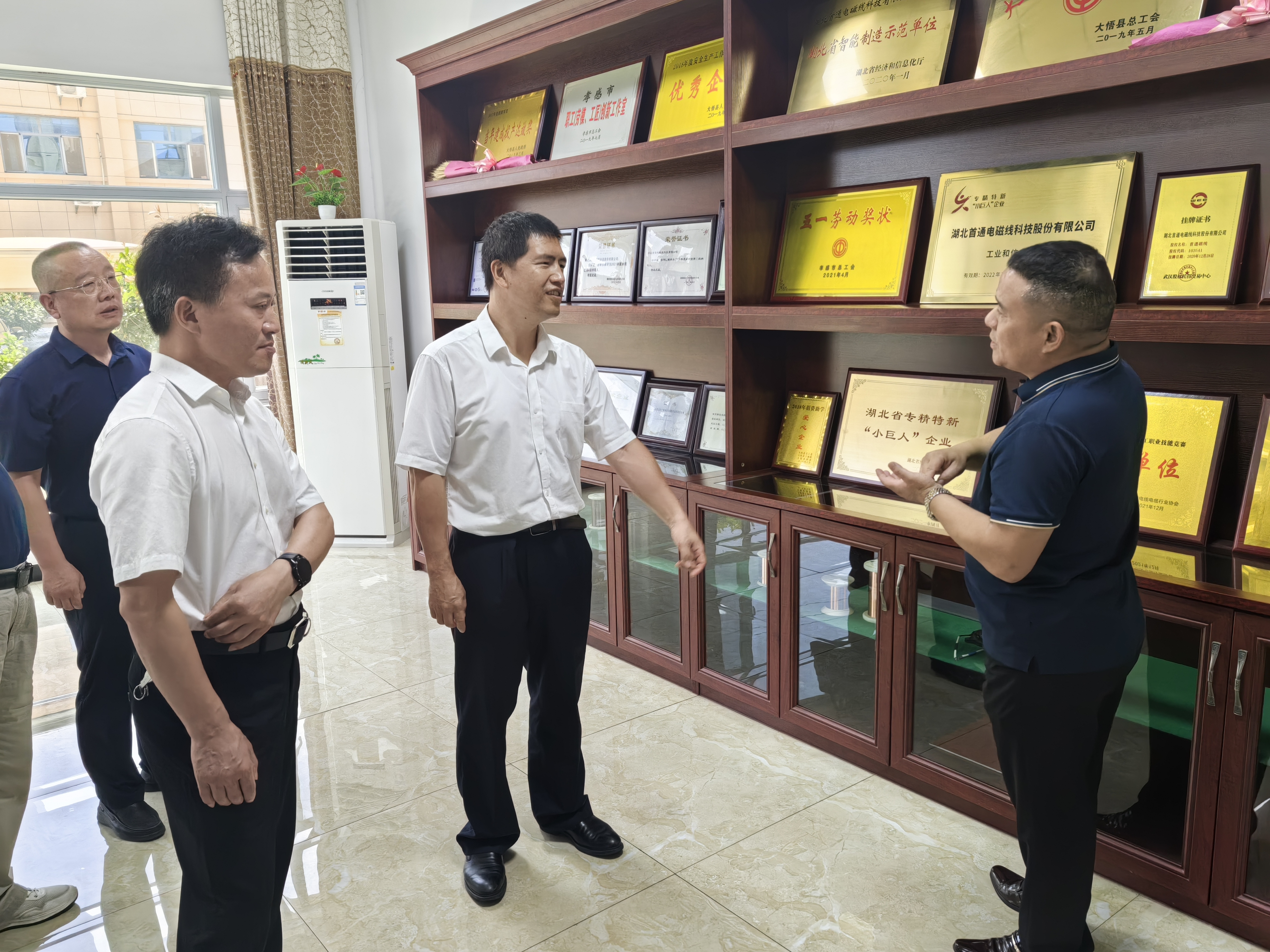 2023年6月27日 湖北省知识产权局副局长,二级巡视员李述武莅临我司开展调研工作,认真听取了公司常务副总黄万平同志关于公司简要介绍,李局长对公司精细化产品称赞连连,同时也给了一些宝贵的意见建议。
