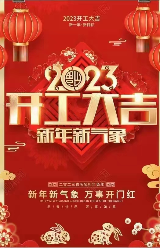 2023年2月1日 雄心创大业,壮志写春秋。开张迎喜报,举步尽春光。凌霄挥巨手,立地起高楼。飞驰千里马,更上一层楼。祝首通公司开工大吉,蒸蒸日上,财源滚滚!